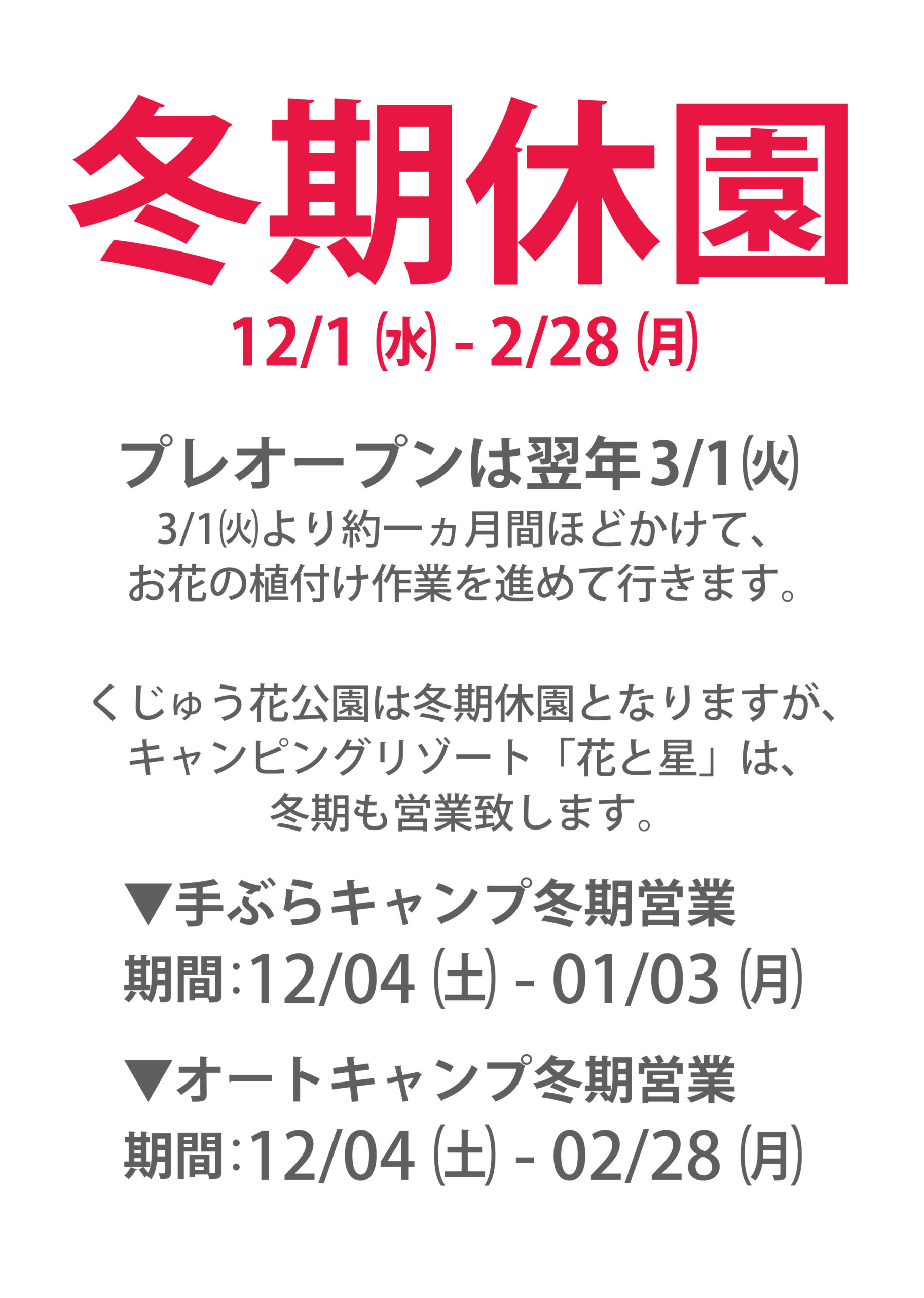 12/1(水)より冬期休園となります**